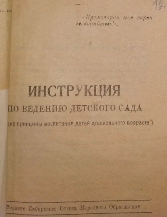 По материалам Голодяев К.А. Первые шаги советского дошкольного образования в Ново-Николаевске // Сибирские огни